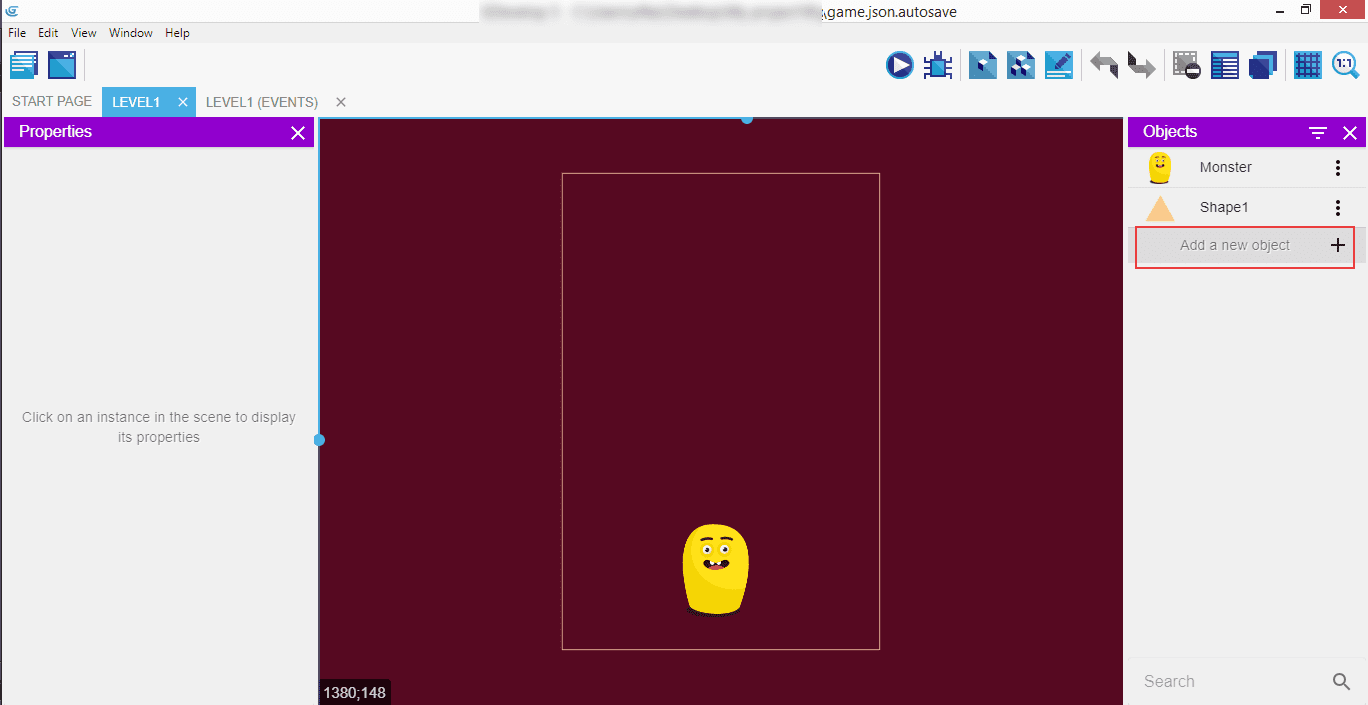 Select a "Sprite", like we did with the Monster before.